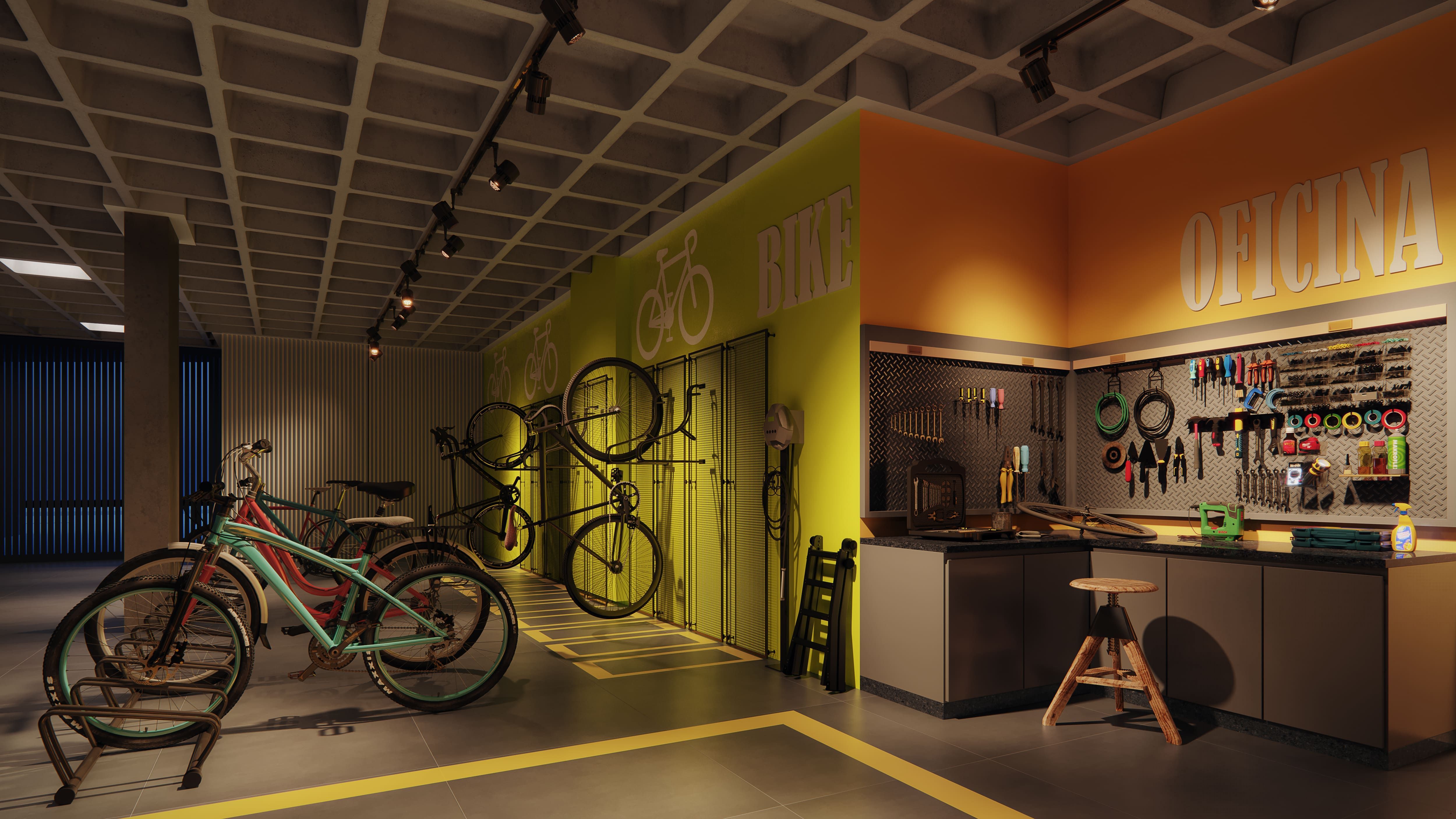 - Bicicletário com área de oficina