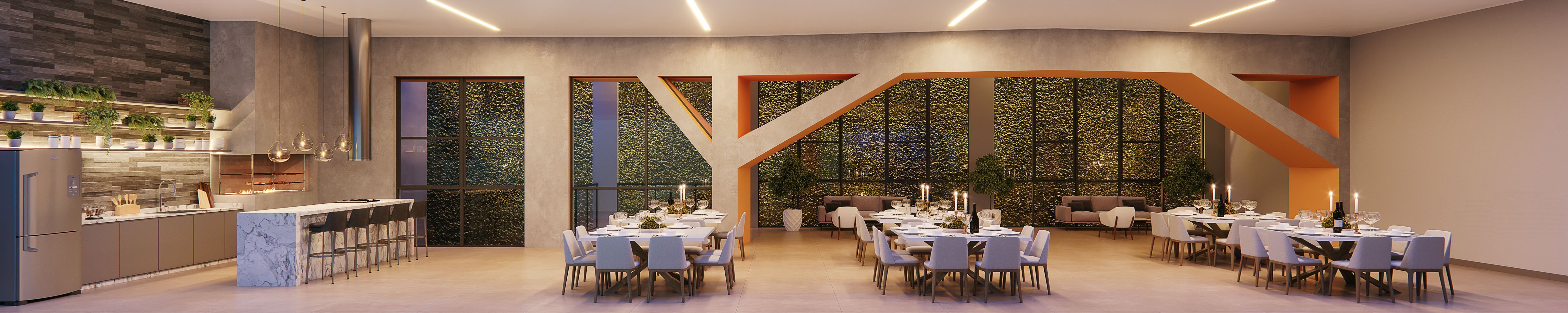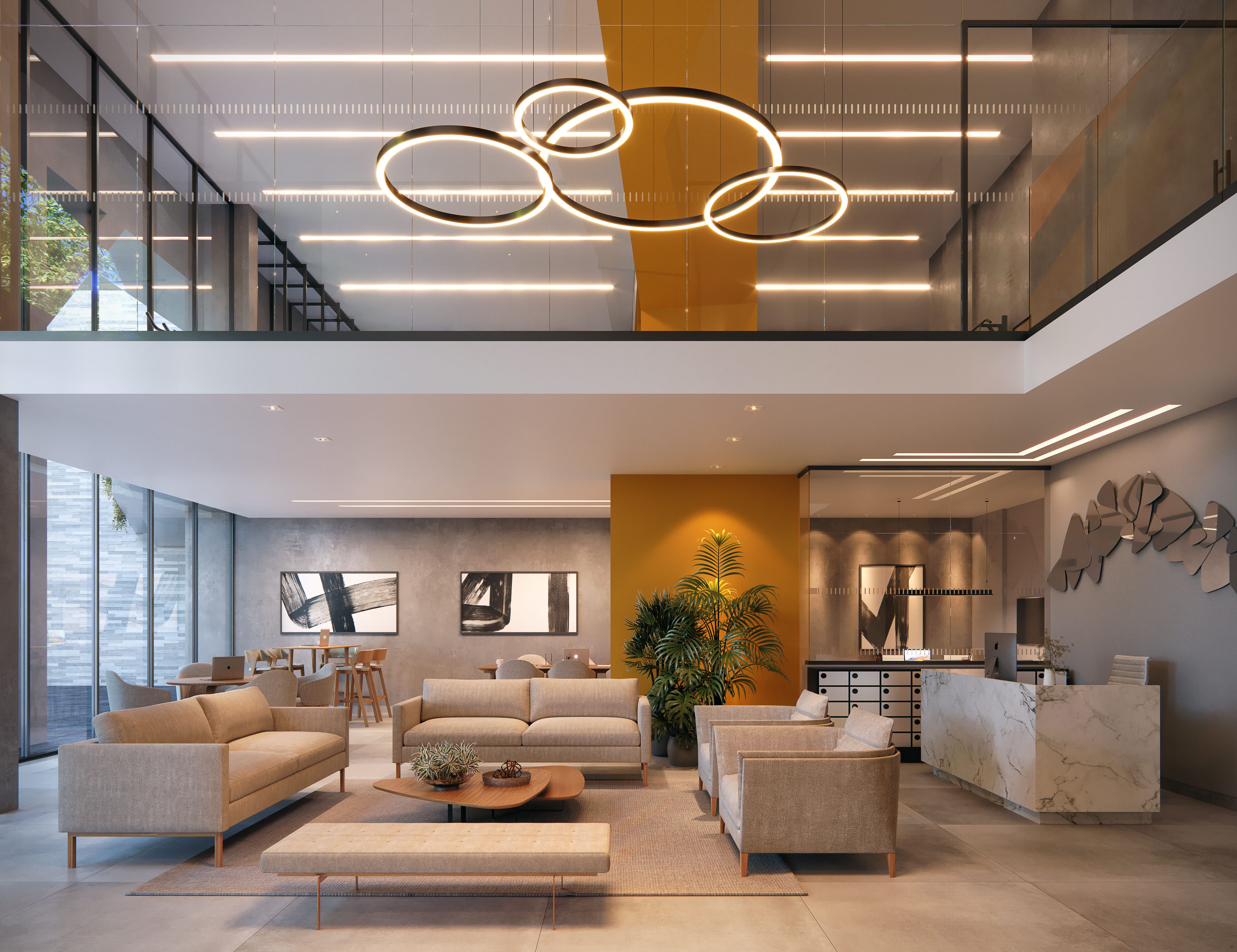 - Hall social com pé-direito duplo